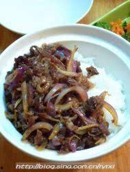 6. 将炒好的凉瓜牛肉倒入事先准备好的米饭上,即可享用。